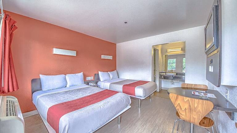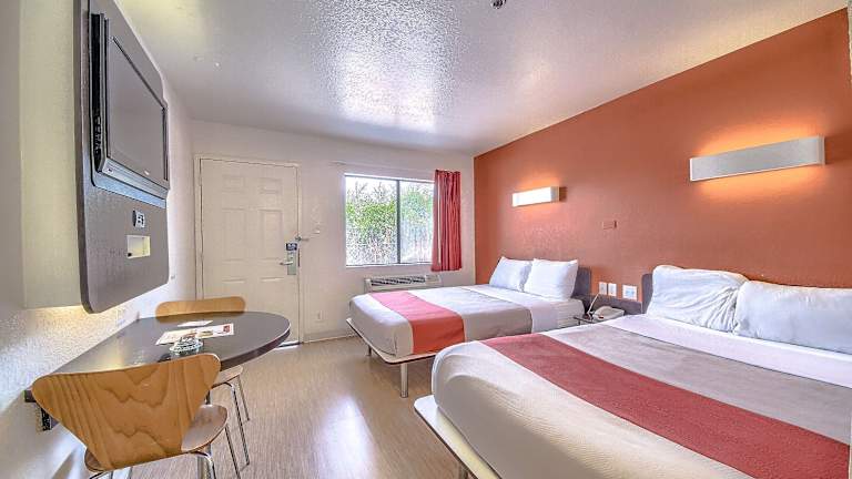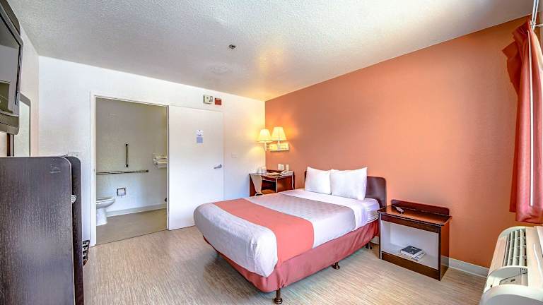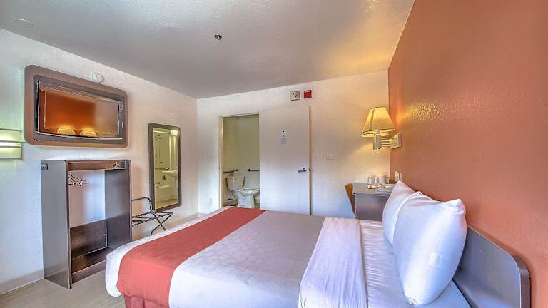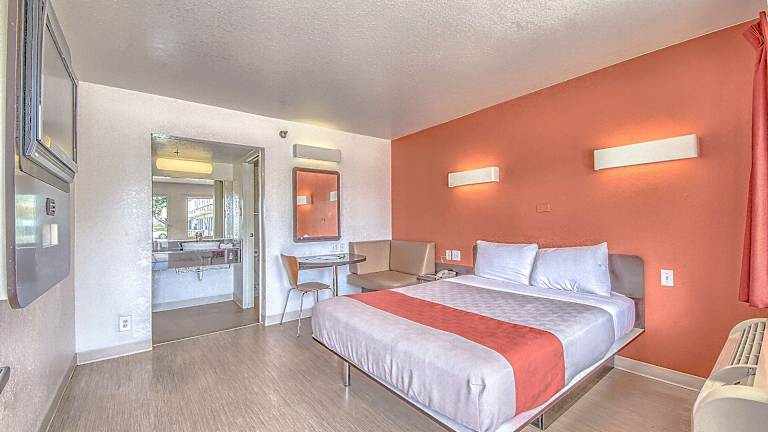 Die Zimmer im Motel 6 San Antonio - Fiesta sind gemütlich eingerichtet und bieten Ihnen alles, was Sie für einen komfortablen Aufenthalt benötigen. Die Zimmer verfügen über einen Flachbild-Kabel-TV und WLAN-Zugang, so dass Sie mit Ihren Lieblingssendungen in Verbindung bleiben können. Die Zimmer sind mit einer Orangenwand und Holzböden gestaltet und bieten einen angenehmen Aufenthaltsraum. Auf Anfrage sind Zimmer mit einer Mikrowelle und einem Kühlschrank verfügbar.