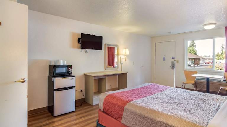 Die Zimmer im Motel 6-Vancouver, WA sind schlicht eingerichtet und bieten Ihnen alles, was Sie für einen angenehmen Aufenthalt benötigen. Jedes Zimmer verfügt über Kabel-TV und kostenloses WLAN, so dass Sie sich entspannen und mit Ihren Lieblingsprogrammen oder dem Internet verbinden können.