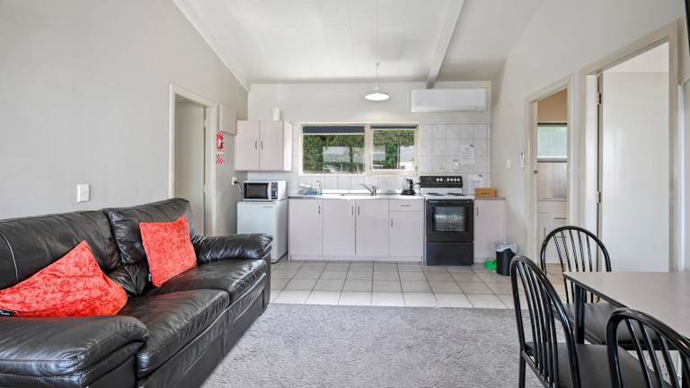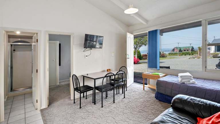 Die Apartments im Jack & Di's Lakefront Resort Motel sind klimatisiert und verfügen über eine Wärmepumpe, um Ihnen Komfort in jeder Jahreszeit zu bieten. Jedes Apartment verfügt über eine voll ausgestattete Küche, einen Essbereich und einen gemütlichen Wohnbereich mit einem Sofa und einem TV. Tee und Kaffee stehen für Sie bereit, um Ihren Tag gut zu beginnen.