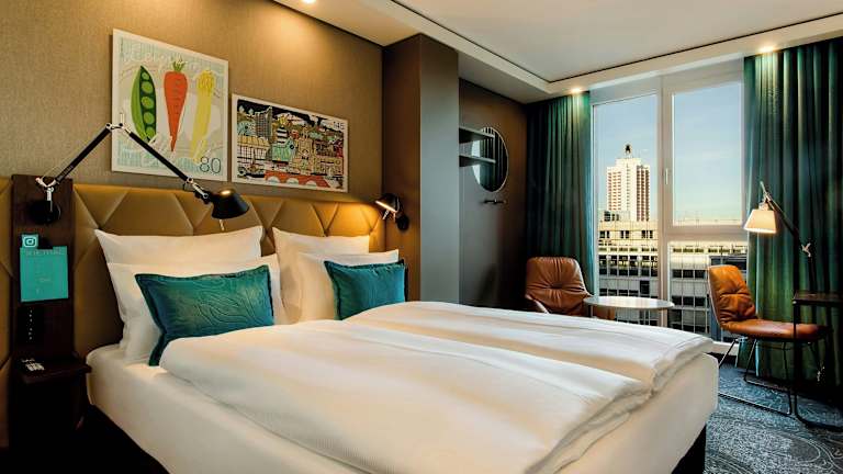 Starten Sie Ihren Tag mit einem gesunden Frühstücksbuffet in der One Lounge des Hotels. Hier werden Ihnen Fairtrade-Kaffee und eine Auswahl an Bio-Produkten serviert, damit Sie gut gestärkt in den Tag starten können. Für einen entspannten Abend können Sie in der Panorama-Bar des Hotels einen Drink genießen und den Blick über die Stadt Leipzig schweifen lassen.