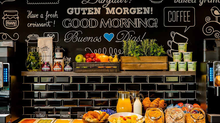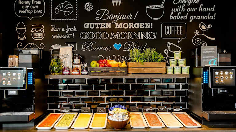 Ein kontinentales Frühstück wird in der One Lounge serviert, die vom Tower of London inspiriert wurde. Die Zutaten stammen aus biologischem Anbau. Zu Tisch sitzen Sie auf Echtleder-Sitzbänken mit typisch englischer Chesterfield-Steppung an einer ritterlichen Tafel. In der Lounge werden auch Drinks und Snacks serviert.