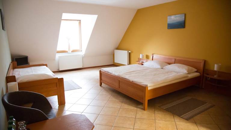 Die zweckmäßig eingerichteten Zimmer sind mit Sat-TV, einer Sitzecke und einem eigenen Bad mit Dusche ausgestattet.