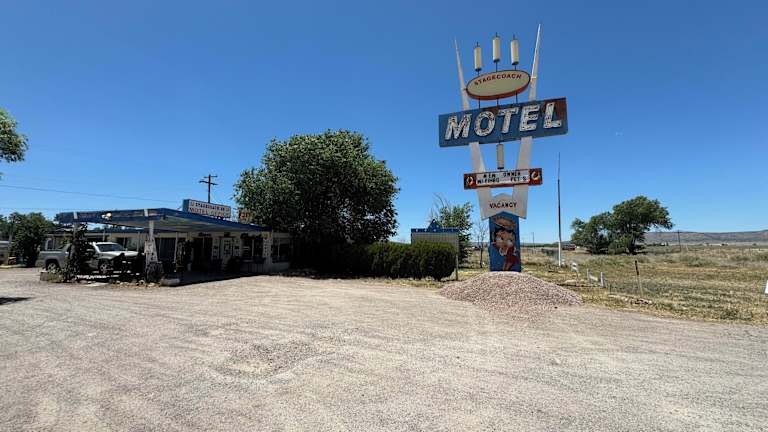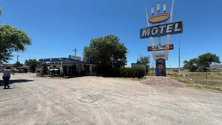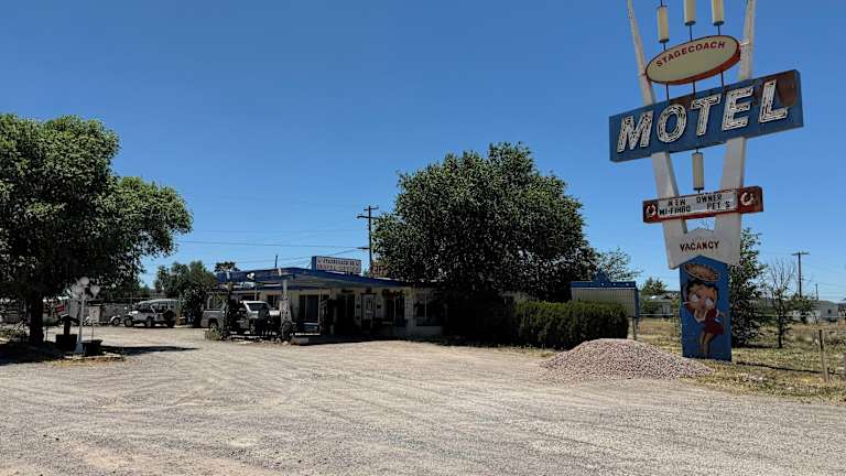 Das Stagecoach 66 Motel in Seligman, Arizona, ist ein charmantes Motel entlang der historischen Route 66. Hier erwarten Sie individuell gestaltete Themenzimmer, eine gemütliche Bar und ein Restaurant, das täglich Kaffee, Tee und Gebäck serviert. Genießen Sie die einzigartige Atmosphäre und erkunden Sie die Umgebung mit dem Ash Fork Route 66 Museum und den Grand Canyon Caverns in der Nähe.