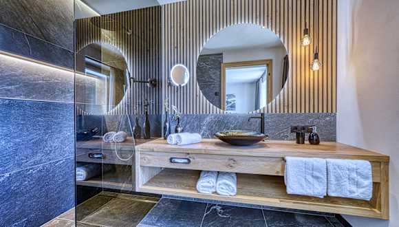 Das Mountain Chalet Schlossberg verfügt über 5 Apartments. Tauchen Sie ein in pure Entspannung und genießen Sie unvergessliche Wohlfühlmomente in unseren modernen Apartment im alpinen Style. Alle Apartments verfügen über eine private Sauna: Finnisch, Infrarot oder Dampf. Drei der eleganten Apartments (Rosengarten, Schlern und Latemar) haben zudem noch einen privaten Whirlpool auf der Terrasse. Mit einem atemberaubenden Blick auf die Dolomiten, können Sie die Seele baumeln zu lassen und sich vollkommen entspannen. Die Apartments sind alpin modern eingerichtet Vom Balkon aus genießen Sie einen herrlichen Blick auf die umliegenden Berge. In unseren voll ausgestatteten Küche und dem Wohnbereich finden Sie alles, was Sie für einen entspannten Aufenthalt benötigen: eine Geschirrspülmaschine, Kühlschrank, elektrisches Backrohr, Filterkaffeemaschine, italienische Mokkamaschine, Toaster, Wasserkocher sowie einen Flachbildschirm mit TV/SAT. Die Schlafzimmer bieten ein komfortable Boxspring-Betten, einen Kleiderschrank und einen Safe. Die stilvollen Badezimmer haben alle eine großzügige Dusche, ein Waschbecken aus Muranoglas, WC, Bidet und einen Föhn. Das Apartment Schwarzhorn verfügt zudem über eine freistehende Badewanne. Handtücher und Bettwäsche werden gestellt. Kostenloses WLAN ist ebenfalls verfügbar.