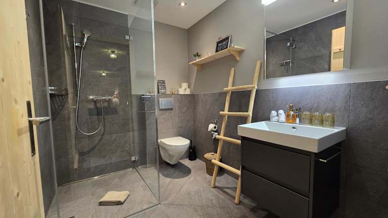 Die Ferienwohnung bietet zwei Schlafzimmer, ein Wohnzimmer, einen Flachbild-TV und eine gut ausgestattete Küche mit Kühlschrank und Geschirrspüler. Zudem verfügt die Unterkunft über ein Badezimmer mit Dusche. Handtücher und Bettwäsche werden bereitgestellt.
