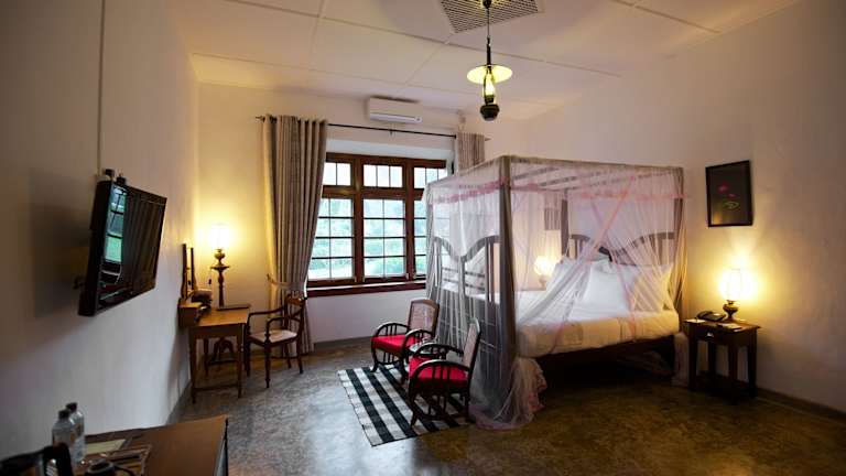 Das Mountbatten Bungalow- Thema Collection in Kandy bietet eine entspannte und luxuriöse Unterkunft mit einem Außenpool und einer großen Sonnenterrasse. Die Zimmer sind elegant im klassischen Stil von Sri Lanka eingerichtet und verfügen über einen Sitzbereich, einen Flachbild-TV und eine Minibar. Das freundliche Personal steht Ihnen rund um die Uhr zur Verfügung und bietet einen Wäsche- und Bügelservice sowie Fahrrad- und Mietwagenverleih. Das Hotel bietet auch Spa-Anwendungen und traditionelle Massagen an. Sie können den Zimmerservice nutzen und auf Anfrage wird das Frühstück auf Ihr Zimmer serviert. Es gibt auch Grillmöglichkeiten für diejenigen, die gerne im Freien speisen möchten.