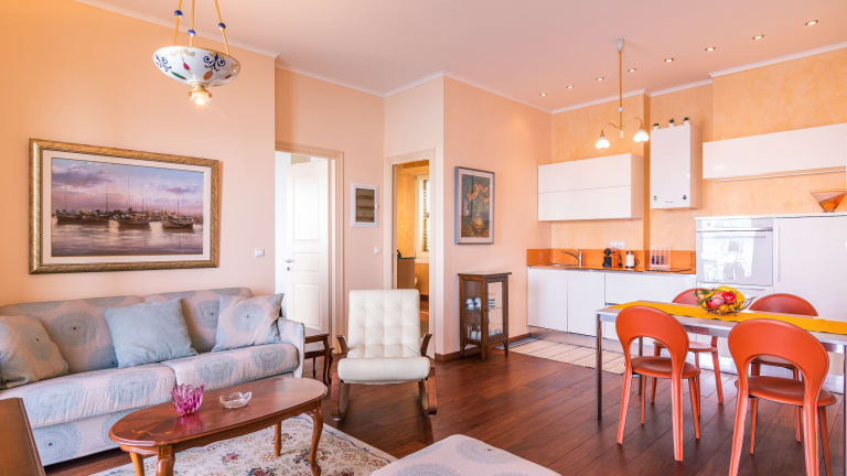 Das klimatisierte Apartment verfügt über zwei Schlafzimmer, ein geräumiges Wohnzimmer und eine voll ausgestattete Küche. Die Küche ist mit einem Kühlschrank und einer Kaffeemaschine ausgestattet, so dass Sie sich bequem selbst versorgen können. Die beiden Badezimmer sind mit Duschen und kostenlosen Pflegeprodukten ausgestattet. Handtücher und Bettwäsche werden im Apartment gestellt, so dass Sie sich um nichts kümmern müssen.
