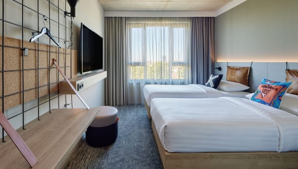 Das Moxy Cologne Muelheim in Köln bietet seinen Gästen eine komfortable und moderne Unterkunft in der Nähe des Kölner Messegeländes. Mit seinen allergikerfreundlichen Zimmern, dem Fitnesscenter und kostenfreiem WLAN erfüllt das Hotel die Bedürfnisse anspruchsvoller Reisender. Die zentrale Lage ermöglicht es den Gästen, die Sehenswürdigkeiten der Stadt bequem zu erkunden.