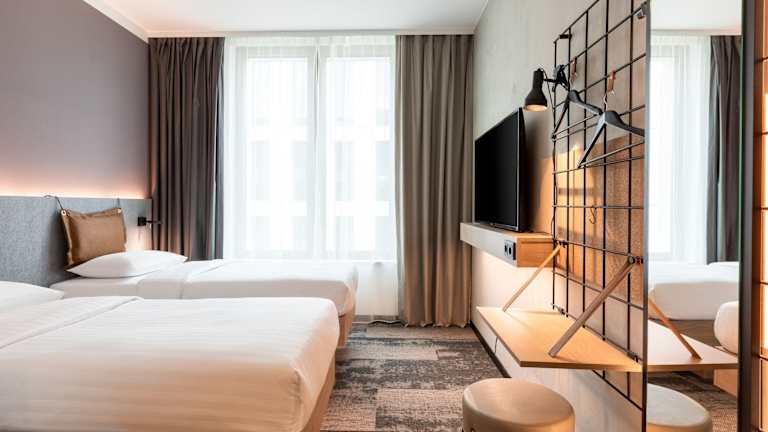 Die stilvoll eingerichteten Zimmer im Moxy Wuerzburg bieten modernen Komfort und eine angenehme Atmosphäre. Die Zimmer verfügen über Annehmlichkeiten wie WLAN, Sat-TV und ein eigenes Bad. Die Zimmer werden täglich gereinigt, um den Gästen einen komfortablen Aufenthalt zu ermöglichen.