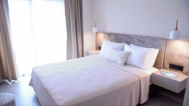 Die Zimmer sind klimatisiert und in den meisten Fällen mit Balkon ausgestattet. Sie verfügen über ein Doppelbett oder ein Sofabett sowie ein separates Schlafzimmer. Zur Ausstattung gehören ein Kühlschrank, ein Flachbildschirmfernseher sowie kostenfreies WLAN. Die Badezimmer sind mit einer Dusche und einem Haartrockner versehen. Das Hotel bietet sowohl Familien- als auch Nichtraucherzimmer an.