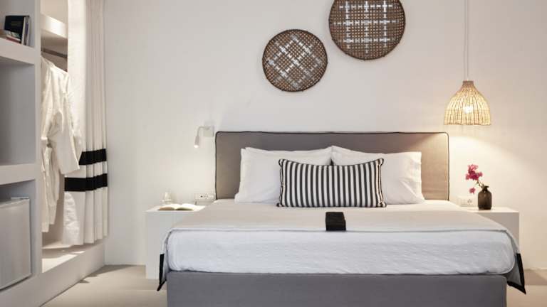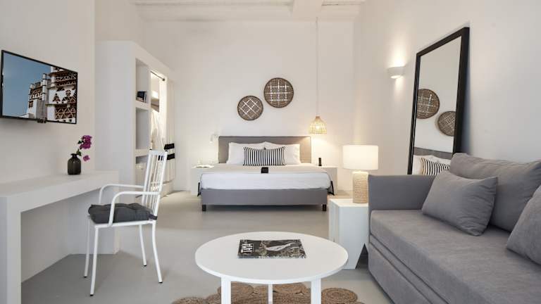 Das Hotel Mr & Mrs White Boutique Resort Tinos bietet 52 Zimmer in einem 1-stöckigen Haupthaus und 3 Nebengebäuden. Die Zimmer sind komfortabel eingerichtet und verfügen über Annehmlichkeiten wie Klimaanlage, WLAN und einen Balkon oder eine Terrasse. Rollstuhlgerechte Zimmer sind ebenfalls verfügbar.