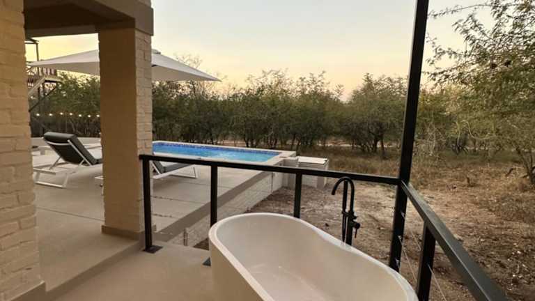 In der MLRTH. Luxury Safari Villa haben Sie Zugang zu einem Außenpool, in dem Sie schwimmen und sich erfrischen können. Der Whirlpool bietet Ihnen die Möglichkeit, sich zu entspannen und den Tag ausklingen zu lassen. Der Garten lädt zum Verweilen ein und bietet Ihnen die Möglichkeit, die Natur zu genießen. Erkunden Sie die Umgebung bei Wanderungen oder Radtouren und entdecken Sie die Tierwelt im nahegelegenen Lionspruit Game Reserve.