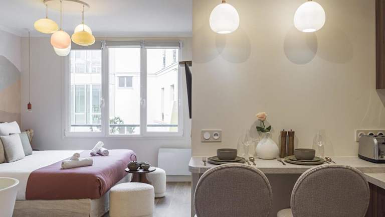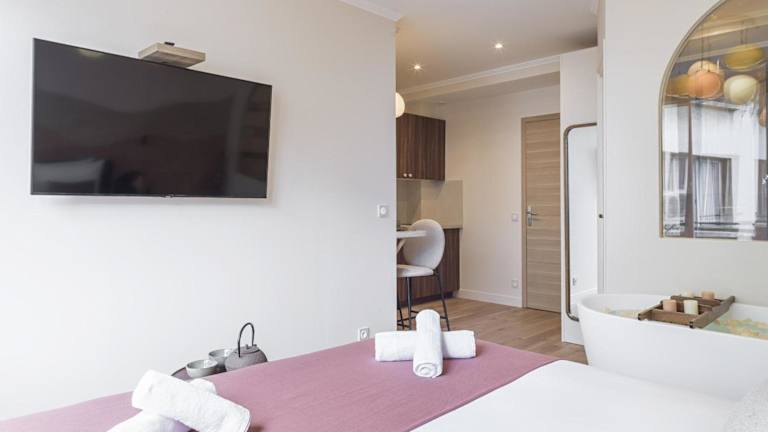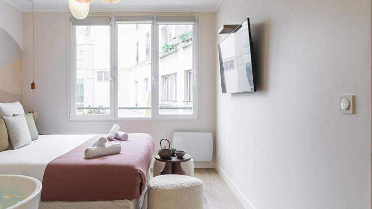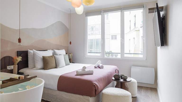 Die Unterkunft befindet sich im Zentrum von Paris, in der Nähe wichtiger Sehenswürdigkeiten wie der Gare Saint-Lazare, dem Triumphbogen und dem Musée de l'Orangerie. Der Flughafen Paris-Orly ist 18 km entfernt.