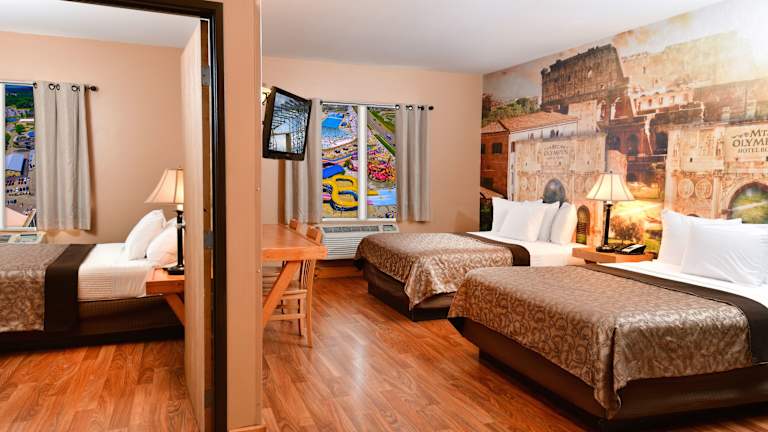 Das Mt. Olympus Water & Theme Park Resort bietet eine Vielzahl von Attraktionen und Fahrgeschäften für Gäste jeden Alters. Ob Sie sich im Pool of Delphi entspannen, auf einem Lazy River treiben, die erste rotierende Wasserrutsche Amerikas erleben oder den Poseidon's Rage Wave Pool genießen möchten, hier ist für jeden etwas dabei. Darüber hinaus gibt es preisgekrönte Achterbahnen und Go-Karts für diejenigen, die trocken bleiben möchten. Registrierte Gäste erhalten kostenlose Eintrittskarten für den Themenpark, sodass sie jederzeit Spaß und Abenteuer genießen können.