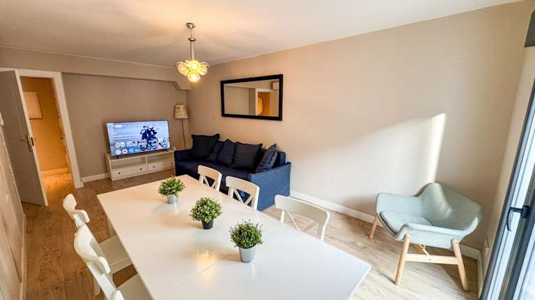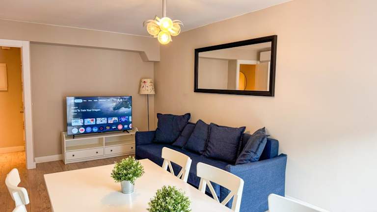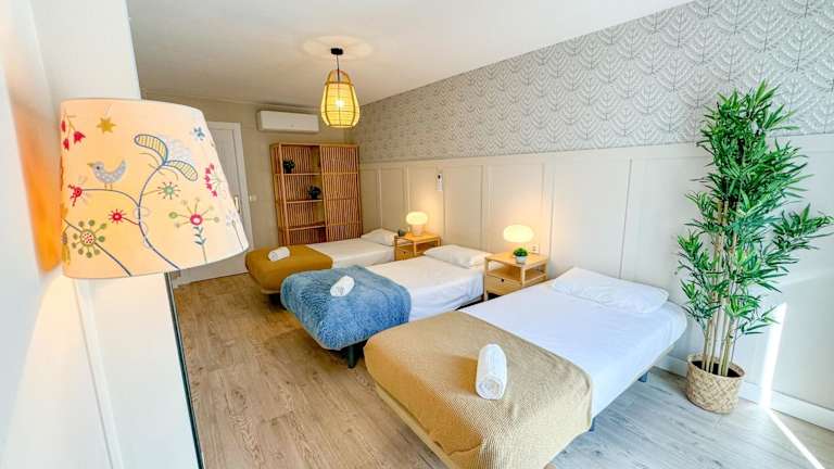 Die Ferienwohnung umfasst 3 Schlafzimmer, ein Wohnzimmer und 2 Badezimmer mit Dusche und kostenlosen Pflegeprodukten. Zudem stehen eine Klimaanlage, kostenloses WLAN und eine voll ausgestattete Küche mit Kühlschrank und Kaffeemaschine zur Verfügung. Handtücher und Bettwäsche sind ebenfalls vorhanden.