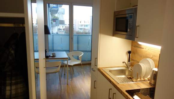 Das München-Riem my room Apartment an der Messe bietet Gästen eine komfortable Unterkunft im Stadtteil Trudering-Riem in München. Mit einem Garten, kostenfreiem WLAN und einer voll ausgestatteten Küche bietet das Apartment alles, was Sie für einen angenehmen Aufenthalt benötigen. Es befindet sich in der Nähe des ICM-Internationales Congress Center München und ist gut mit öffentlichen Verkehrsmitteln erreichbar.
