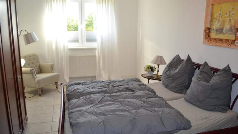 Die Ferienwohnung verfügt über drei Schlafzimmer, einen Fernseher und eine voll ausgestattete Küche. Die Küchenausstattung umfasst einen Kühlschrank, einen Geschirrspüler, eine Waschmaschine, einen Ofen und eine Herdplatte. Bettwäsche und Handtücher sind nicht im Preis enthalten und können gegen Aufpreis gemietet werden.