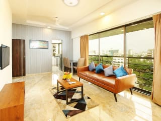 Das Hotel Mumbai House Luxury Apartments Santacruz East, Mumbai in Mumbai bietet seinen Gästen komfortable und klimatisierte Unterkünfte mit herrlichem Stadtblick und kostenfreiem WLAN. Die geräumigen Apartments verfügen über eine voll ausgestattete Küche, einen Safe und einen Flachbild-Sat-TV. Ein kontinentales, englisches/irisches oder amerikanisches Frühstück wird jeden Morgen serviert und im hoteleigenen Restaurant können Sie amerikanische, chinesische und indische Gerichte genießen. Das Hotel bietet auch kostenfreie Privatparkplätze, ein Businesscenter und eine 24-Stunden-Rezeption. Eine Autovermietung ist ebenfalls verfügbar. Das Hotel liegt in der Nähe von Sehenswürdigkeiten wie dem Theater Prithvi und dem ISKCON, und der internationale Flughafen Mumbai ist nur 1 km entfernt.