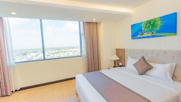 Die Zimmer im Muong Thanh Grand Quang Nam sind komfortabel eingerichtet und bieten Annehmlichkeiten wie einen Fernseher und ein eigenes Badezimmer mit Pflegeprodukten und einem Haartrockner. Einige Zimmer verfügen auch über einen separaten Sitzbereich, der zum Entspannen einlädt.