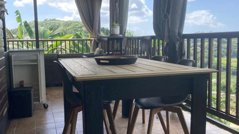 Die Muscade Lodge bietet ein komfortables Haus mit 2 Schlafzimmern, das Platz für Familien oder Gruppen bietet. Die voll ausgestattete Küche mit Kühlschrank, Backofen, Herd und Essbereich ermöglicht es Ihnen, Ihre eigenen Mahlzeiten zuzubereiten. Der gemütliche Sitzbereich lädt zum Entspannen ein und die möblierte Terrasse bietet einen atemberaubenden Blick auf die Berge und das Karibische Meer.