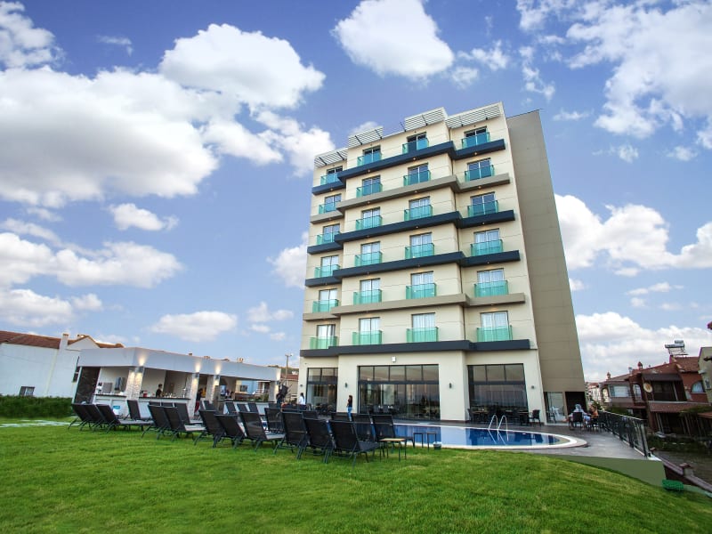 Das Hotel Musho in Ayvalik, Sarimsakli, ist der ideale Ort für einen erholsamen Strandurlaub. Mit einem Innen- und Außenpool sowie einem eigenen Sandstrandbereich können Sie hier die Sonne und das Meer in vollen Zügen genießen. Das Hotel bietet kostenfreies WLAN und klimatisierte Zimmer mit moderner Ausstattung. Das freundliche Personal an der 24-Stunden-Rezeption steht Ihnen jederzeit zur Verfügung. Der Flughafen Edremit Körfez ist nur 42 km entfernt und der Flughafen Izmir erreichen Sie nach 187 km.