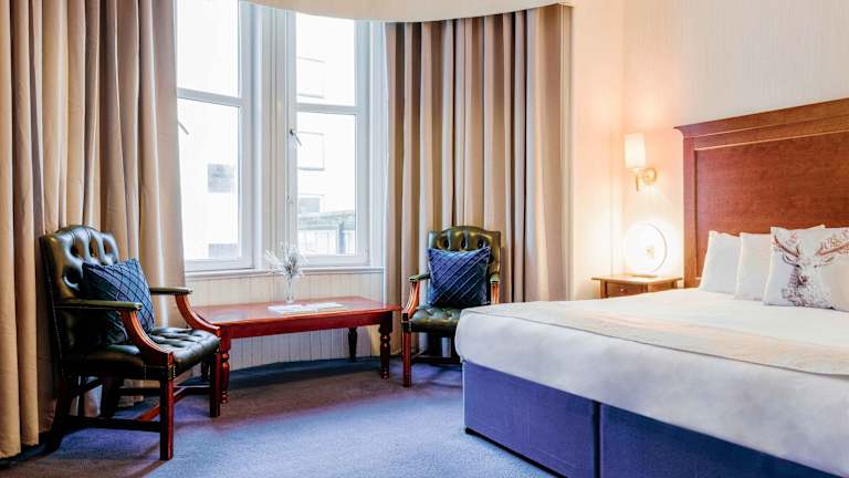 Das Best Western Muthu Queens Hotel verfügt über insgesamt 44 Zimmer, darunter 11 Einzel- und 31 Doppelzimmer, die sich auf drei Etagen verteilen. Die Zimmer sind über einen Aufzug erreichbar und bieten eine komfortable Unterkunft für die Gäste. Zur Ausstattung gehören eine individuell steuerbare Klimaanlage und Heizung, ein Fernseher, eine Tee-/Kaffeemaschine und kostenfreies WLAN. Die Badezimmer sind mit einer Dusche oder einer Badewanne sowie einem Haartrockner ausgestattet. Familien- und Nichtraucherzimmer stehen ebenfalls zur Verfügung.