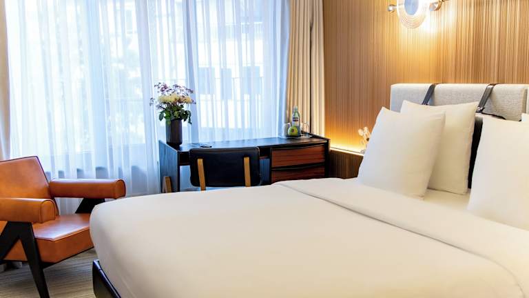 Die Zimmer sind mit Klimaanlage, einem Flachbild-TV mit Satellitenkanälen, einer Kaffeemaschine und einem eigenen Badezimmer ausgestattet. Zur Ausstattung gehören auch ein Haartrockner, kostenlose Pflegeprodukte, ein Schreibtisch sowie kostenfreies WLAN. Einige Zimmer bieten Stadtblick. Die Unterbringung umfasst Doppel-, Queensize- und Kingsize-Betten, eine Tee-/Kaffeemaschine, ein Telefon und einen Safe. Es sind auch Nichtraucherzimmer verfügbar.
