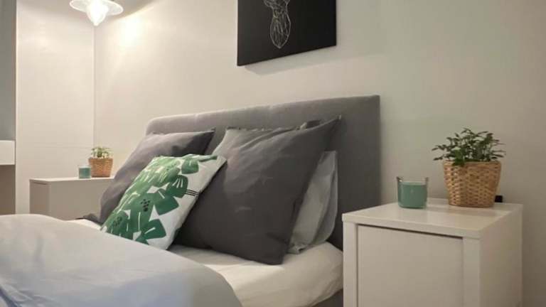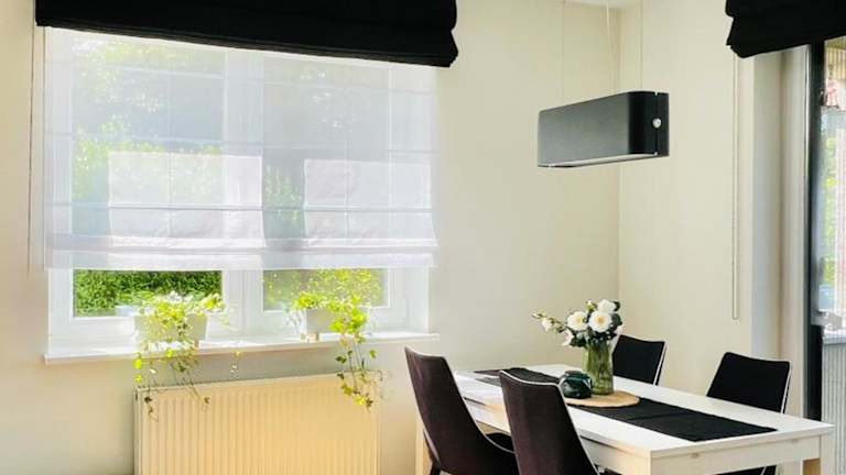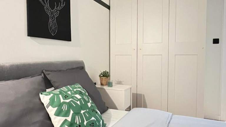 Die Wohnung bietet Platz für bis zu vier Personen und umfasst zwei Schlafzimmer, ein Wohnzimmer, eine gut ausgestattete Küchenzeile mit Kühlschrank und Geschirrspüler sowie ein Badezimmer mit Dusche. Ein Balkon mit Gartenblick ist ebenfalls vorhanden. Handtücher und Bettwäsche werden bereitgestellt. Die Unterkunft ist als Nichtraucherzimmer konzipiert und eignet sich für Familien.