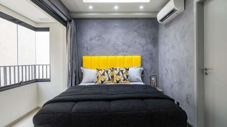 Das klimatisierte Apartment im BA2 Studio Novo Moderno Centro Paulista Bela Vista bietet Ihnen ein komfortables und modernes Wohnambiente. Es verfügt über ein Schlafzimmer, ein Wohnzimmer, eine voll ausgestattete Küche mit Kühlschrank und Kaffeemaschine sowie ein Badezimmer mit Dusche und Haartrockner. Vom Balkon aus haben Sie einen schönen Blick auf die Umgebung. Handtücher und Bettwäsche werden zur Verfügung gestellt.