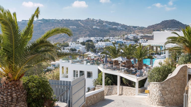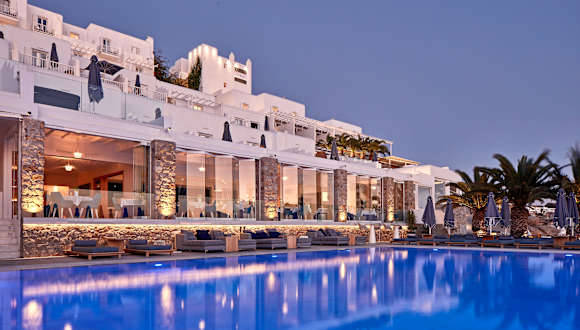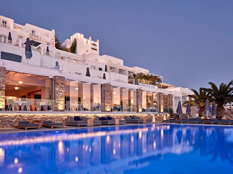 Das Myconian Ambassador Relais & Chateaux liegt direkt am beliebten Strand von Platis Gialos und bietet seinen Gästen eine idyllische Lage mit einem beeindruckenden Blick auf das Meer. Der Strand ist nur wenige Schritte entfernt und lädt zum Entspannen und Sonnenbaden ein. In der Nähe des Hotels gibt es auch eine Auswahl an authentischen Tavernen, in denen die Gäste lokale Köstlichkeiten genießen können. Die malerische Hauptstadt Mykonos-Stadt ist nur etwa 4 km entfernt und bietet zahlreiche Einkaufs- und Unterhaltungsmöglichkeiten.
