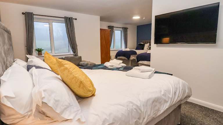 Das Ferienhaus im Myddelton Grange verfügt über 17 Schlafzimmer, die den Gästen viel Platz und Komfort bieten. Die voll ausgestattete Küche mit Kühlschrank und Backofen ermöglicht es den Gästen, Mahlzeiten zuzubereiten und sich wie zu Hause zu fühlen. Die 16 Badezimmer sind mit Dusche und Whirlpool ausgestattet, um den Gästen einen erholsamen Aufenthalt zu ermöglichen.