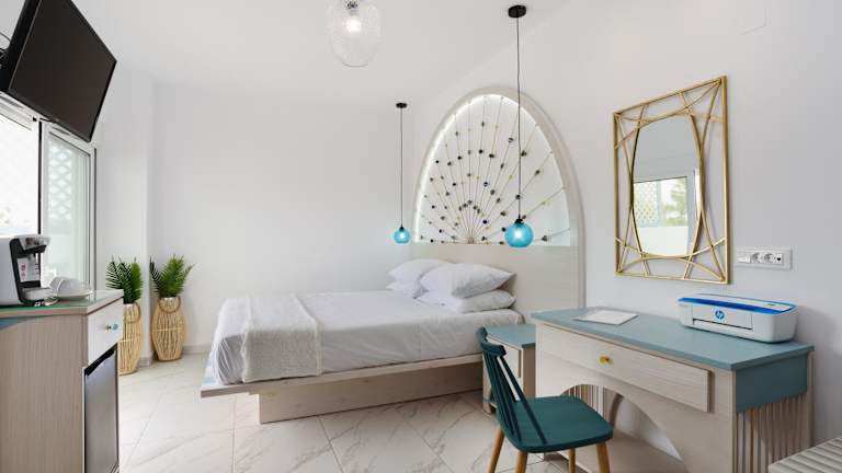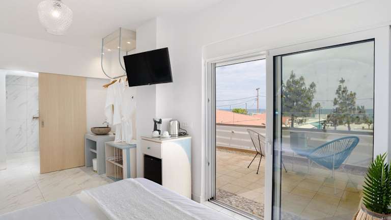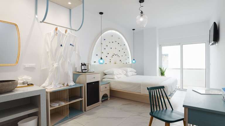 Die Zimmer im Mylos Luxury Escape sind geschmackvoll eingerichtet und bieten Ihnen einen gemütlichen Rückzugsort während Ihres Aufenthalts. Alle Zimmer sind klimatisiert und verfügen über einen Balkon, auf dem Sie den Blick auf die Umgebung genießen können. Zur Ausstattung gehören ein Flachbild-TV, ein Kühlschrank, eine Minibar, eine Kaffeemaschine und ein Wasserkocher. Das eigene Bad ist mit einer Dusche und kostenfreien Pflegeprodukten ausgestattet.