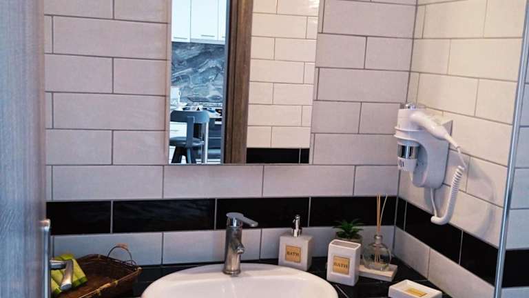 Die Ferienwohnung verfügt über zwei Schlafzimmer, ein Wohnzimmer und eine voll ausgestattete Küche, die mit einem Kühlschrank und einer Kaffeemaschine ausgestattet ist. Des Weiteren gibt es ein Badezimmer mit einer Dusche sowie einen Haartrockner. Handtücher und Bettwäsche werden bereitgestellt.