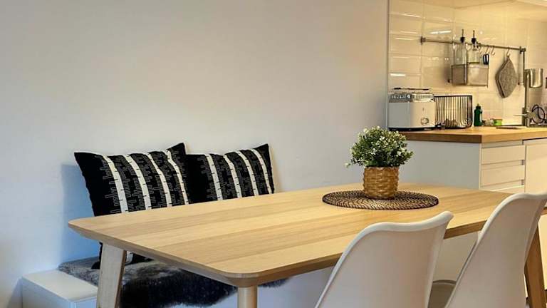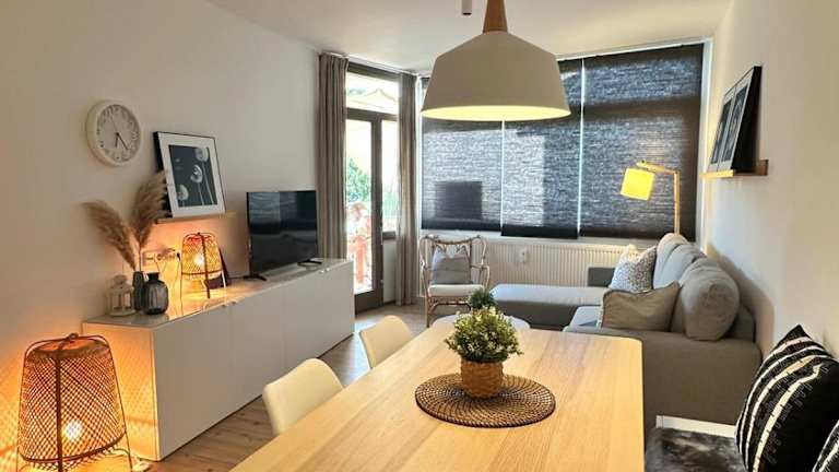 Die Ferienwohnung bietet ein Schlafzimmer, ein Wohnzimmer und eine voll ausgestattete Küche, die mit einem Kühlschrank und einer Kaffeemaschine ausgestattet ist. Des Weiteren gibt es ein Badezimmer mit Dusche und Haartrockner. Bettwäsche und Handtücher werden bereitgestellt.
