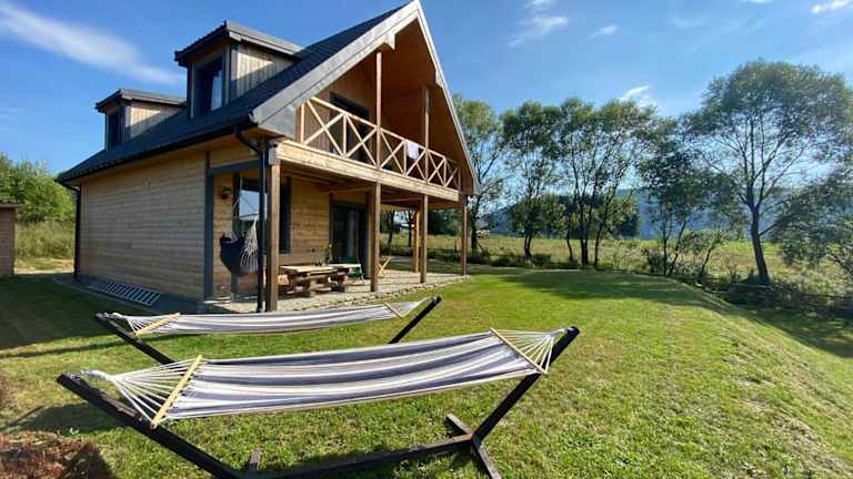 Das Ferienhaus im Na dziko! Bieszczady - Dom w Bieszczadach verfügt über 3 Schlafzimmer, die Platz für eine große Familie oder eine Gruppe von Freunden bieten. Der Wohnbereich ist gemütlich eingerichtet und lädt zum Entspannen ein. Die voll ausgestattete Küche bietet alles, was Sie für die Zubereitung Ihrer Mahlzeiten benötigen. Genießen Sie den Blick auf die Berge vom Balkon aus.
