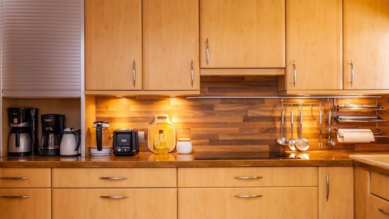In der Unterkunft ist eine Küche mit Kühlschrank und Geschirrspüler vorhanden, sodass Selbstverpflegung möglich ist. Grillmöglichkeiten im Garten stehen ebenfalls zur Verfügung.