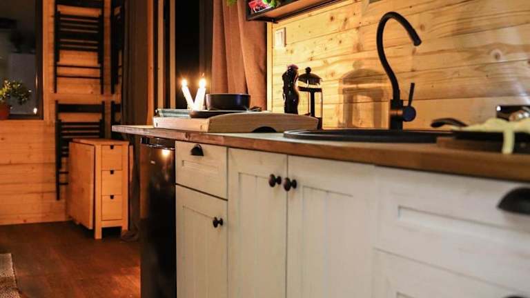 Die Ferienwohnung bietet ein Schlafzimmer und eine voll ausgestattete Küchenzeile. Es besteht Zugang zu einer Terrasse mit Gartenblick.