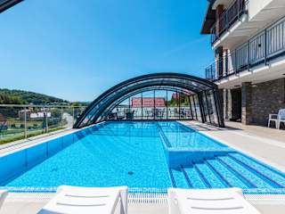 Das Na Wzgórzu FAMILY RESORT in Gródek nad Dunajcem ist ein ideales Ziel für Familienurlaube. Hier können Sie sich in einer entspannten Atmosphäre erholen und zahlreiche Annehmlichkeiten genießen, darunter kostenfreies WLAN, eine Gemeinschaftslounge, eine Terrasse und eine Bar. Die geräumigen Wohneinheiten verfügen über einen Balkon, eine gut ausgestattete Küchenzeile und einen Flachbild-TV. Der Außenpool, der Garten und die Grillmöglichkeiten bieten zusätzliche Möglichkeiten zur Entspannung und Freizeitgestaltung.