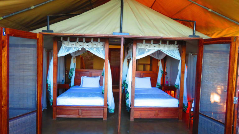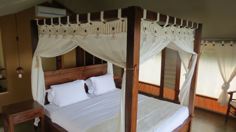Die Naara Eco Lodge & Spa bietet luxuriöse Safarizelte, die klimatisiert sind und einen komfortablen Aufenthalt garantieren. Jedes Zelt verfügt über einen Sitzbereich und einen möblierten Balkon mit Blick auf den See. Die Unterkünfte sind mit Moskitonetzen ausgestattet und verfügen über ein eigenes Bad mit Badewanne oder Dusche. Hier können Sie sich zurückziehen und die Natur in aller Ruhe genießen.