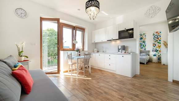 Verbringen Sie einen erholsamen Aufenthalt im Nad morzem 62 in Władysławowo. Das Hotel bietet komfortable Unterkünfte mit kostenfreiem WLAN, Grillmöglichkeiten und einem schönen Garten. Parkplätze stehen Ihnen ebenfalls kostenlos zur Verfügung. Das Apartment ist modern eingerichtet und verfügt über eine Terrasse, einen gemütlichen Sitzbereich und eine voll ausgestattete Küchenzeile. Die Strände Wladyslawowo 4 und Cetniewo sind nur einen kurzen Spaziergang entfernt, und der Flughafen Danzig ist gut erreichbar.