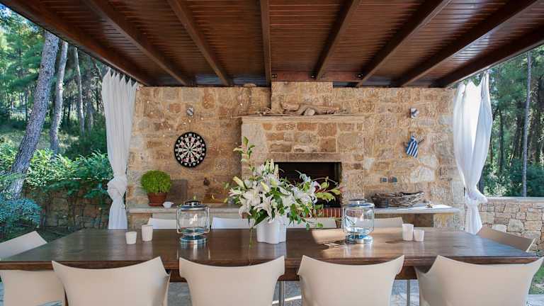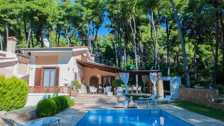 Naftilos Villa Sani with private Pool bietet eine Unterkunft mit Zugang zu einem Außenpool, einer Gemeinschaftslounge und einer Gemeinschaftsküche. Die Villa verfügt über einen eigenen Pool, einen Garten sowie einen Grillbereich.