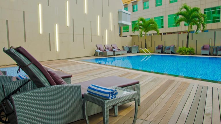 Das Nagoya Hill Hotel Batam ist ein elegantes Hotel mit moderner Architektur und ansprechendem Design. Die Unterkunft bietet einen Außenpool sowie kostenfreies WLAN in allen Bereichen. An der 24-Stunden-Rezeption stehen Ihnen verschiedene Dienstleistungen zur Verfügung, darunter Flughafentransfers und Mietwagen, die gegen Gebühr erhältlich sind.