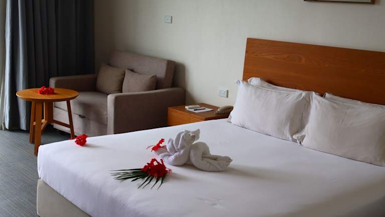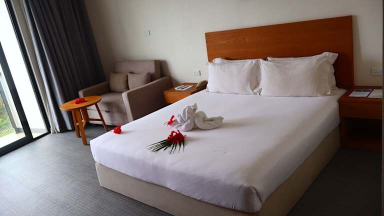 Die Zimmer im Nalagi Hotel sind modern und komfortabel eingerichtet und bieten einen herrlichen Blick auf die Bucht von Nadi oder die Berge. Das Highlight des Hotels ist der Infinity-Pool auf dem Dach, wo Sie sich entspannen und den Ausblick genießen können. Das hoteleigene Spa, das Veilomani Spas Fiji, bietet eine Vielzahl von Massagen und Wellnessanwendungen, um Körper und Geist zu verwöhnen und zu regenerieren. WLAN steht Ihnen kostenlos zur Verfügung und das freundliche Personal an der Rezeption steht Ihnen gerne zur Verfügung, um Ihnen bei Fragen und Wünschen zu helfen.