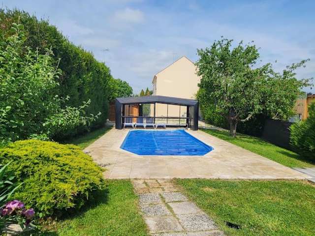 Erleben Sie einen entspannten Aufenthalt im *Maison piscine chauffée, Spa* Paris-CDG-Disney in Jagny-sous-Bois. Dieses Ferienhaus bietet Ihnen einen Außenpool, einen Garten und eine Gemeinschaftslounge. Genießen Sie den kostenlosen WLAN-Zugang und den Blick auf den Garten. Das Ferienhaus verfügt über 6 Schlafzimmer, eine voll ausgestattete Küche und 3 Badezimmer mit Whirlpool und Badewanne. Entspannen Sie im Whirlpool oder nutzen Sie den Kinderspielplatz. Der Bahnhof Chantilly-Gouvieux ist nur 14 km entfernt und der Parc Asterix erreichen Sie nach 20 km. Der Flughafen Paris-Charles-de-Gaulle ist nur 11 km entfernt und ein kostenpflichtiger Flughafentransfer wird angeboten.