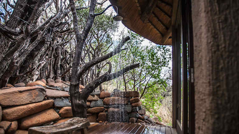 Das Restaurant der Lodge bietet eine Vielzahl von kulinarischen Köstlichkeiten und verfügt über einen Weinkeller mit erlesenen Weinen. Der Loungebereich mit Kaminen führt zu einer Terrasse mit Boma-Feuerstellen und Blick auf das Tal. Genießen Sie hier Ihr Essen in einer entspannten und gemütlichen Atmosphäre. Auf der Terrasse befindet sich auch eine Bar, an der Sie erfrischende Getränke genießen können.