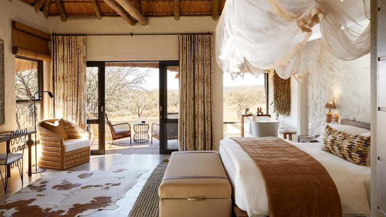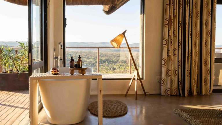 Die Suiten in der Nambiti Hills Private Game Lodge sind geräumig und bieten eine Terrasse mit Sitzgelegenheiten im Freien und Blick auf die Umgebung. Jede Suite verfügt über einen Loungebereich, ein Badezimmer mit einer atemberaubenden Steinschale und Annehmlichkeiten wie Klimaanlage, kostenfreies WLAN und Tee- und Kaffeezubereitungsmöglichkeiten. Hier können Sie sich zurücklehnen und die Ruhe und Schönheit der Natur genießen.