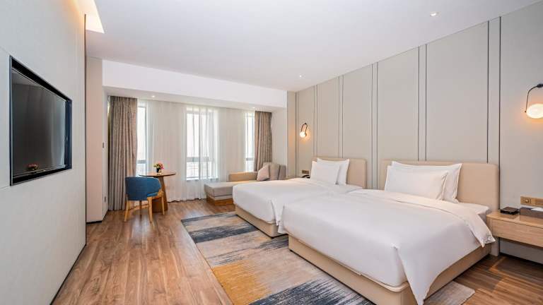 Die Zimmer im Nanan Ao Sheng Yi Hao Hotel sind komfortabel und modern eingerichtet. Jedes Zimmer verfügt über eine Klimaanlage, einen gemütlichen Sitzbereich und einen Flachbild-Sat-TV. Ein Safe und ein eigenes Badezimmer mit Dusche, kostenfreien Pflegeprodukten und einem Haartrockner sind ebenfalls vorhanden. Für zusätzlichen Komfort gibt es einen Schreibtisch und einen Wasserkocher in jedem Zimmer.