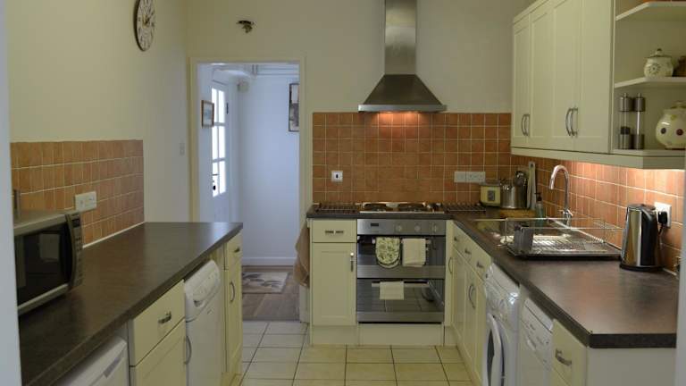 Das Ferienhaus verfügt über eine gut ausgestattete Küche mit Kühlschrank, Geschirrspüler und Ofen. Es umfasst ein Wohnzimmer mit Sitz- und Essbereich, 2 Schlafzimmer sowie 1 Badezimmer mit Dusche und Badewanne. Handtücher und Bettwäsche werden bereitgestellt.