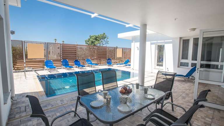 Verbringen Sie Ihren Urlaub im Napa Nissi House in Ayia Napa und genießen Sie die komfortable Unterkunft zur Selbstverpflegung. Das moderne Apartment bietet einen Balkon und eine Terrasse mit Gartenblick. Entspannen Sie im klimatisierten Wohnzimmer mit Flachbild-TV oder bereiten Sie Ihre Mahlzeiten in der voll ausgestatteten Küche zu. Die Unterkunft befindet sich in der Nähe des Nissi Beach und bietet kostenfreie Parkplätze.