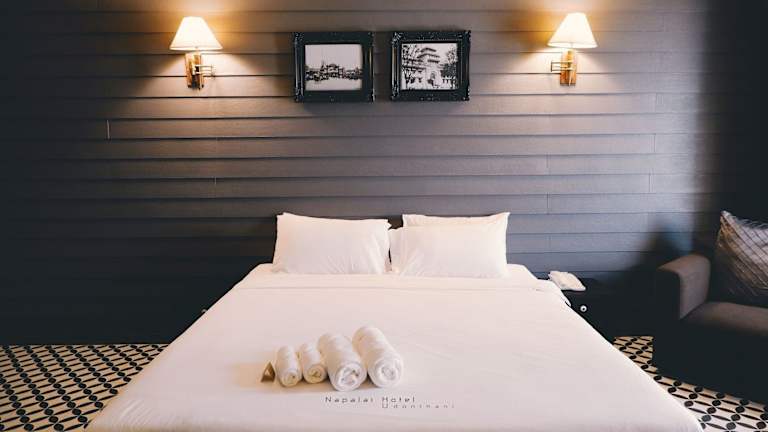 Das Napalai Hotel liegt etwa 15 Fahrminuten vom Stadtzentrum von Udonthani entfernt. In der Umgebung finden Sie zahlreiche Einkaufsmöglichkeiten und Restaurants. Der Flughafen Udonthani ist nur 10 Fahrminuten entfernt und das Einkaufszentrum Central Plaza erreichen Sie nach 4,5 km.